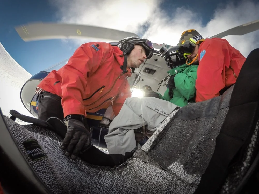 With the blades spinning ominously overhead, my arms were gripped tightly by two friends, my legs by another, as we visually counted down to our next synchronous move away from the heli and into my bi-ski.
